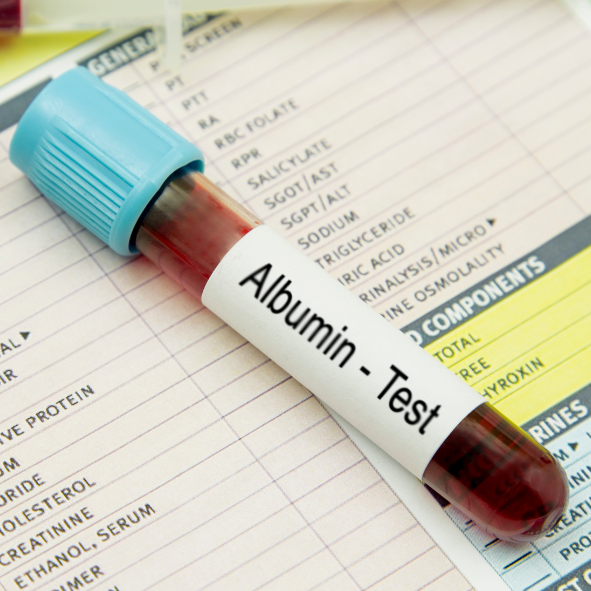 Deze test wordt gedaan om te controleren of de nieren of lever beschadigd zijn. Bij een beschadiging van de nieren of de lever zal het albuminegehalte in het bloed afnemen. Daarnaast kan het gemeten worden om de voedingstoestand van een patiënt te meten. Bij uitdroging neemt het albuminegehalte in het bloed juist toe.