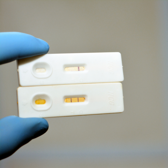 hCG kwalitatieve in urine. hCG, beta-humaan choriongonadotrofine.