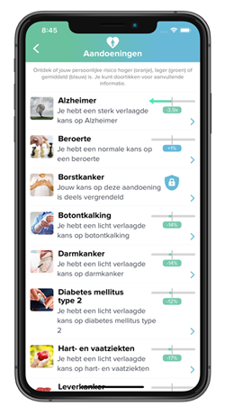 - Genetische aanleg voor 15+ aandoeningen, inclusief preventieve leefstijladviezen