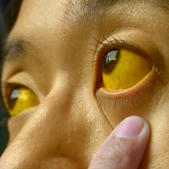 - Geelzucht: Dit veroorzaakt een gele verkleuring van de huid en het oogwit als gevolg van een ophoping van bilirubine in het lichaam, wat optreedt wanneer de lever niet goed functioneert.