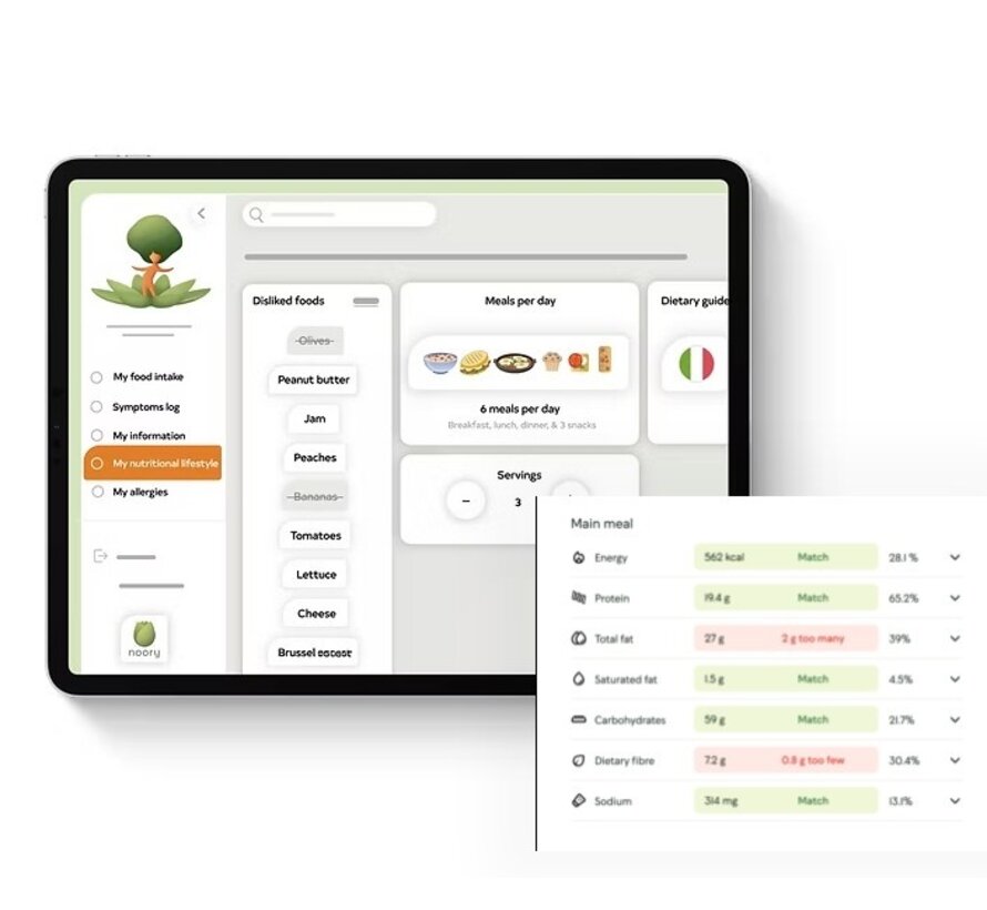 Noory kijkt verder dan alleen voeding. Het plan wordt volledig afgestemd op jouw medische situatie, voorkeuren en behoeften. Zo krijg je advies dat past bij jouw leven, niet andersom.