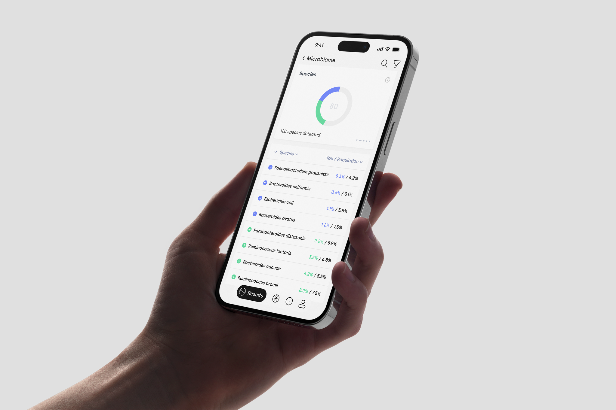 Een onevenwichtig darmmicrobioom kan op korte termijn spijsvertering en stemming beïnvloeden en op lange termijn het risico op ziekten verhogen en je biologische leeftijd negatief beïnvloeden. Via een stoelgangtest, die thuis uitgevoerd kan worden, analyseren we de diversiteit en overvloed van meer dan 300 soorten in je darmmicrobioom.