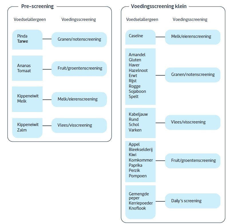 De Vlees- en Visscreening is een aanvullende voedselallergietest die wordt geadviseerd na een positieve pre-screening. Deze test is specifiek bedoeld voor mensen die bij de pre-screening of kleine voedingsscreening een klasse 3, 4 of 5 reactie hebben op ei (kip), varkensvlees, rundvlees of vis.
